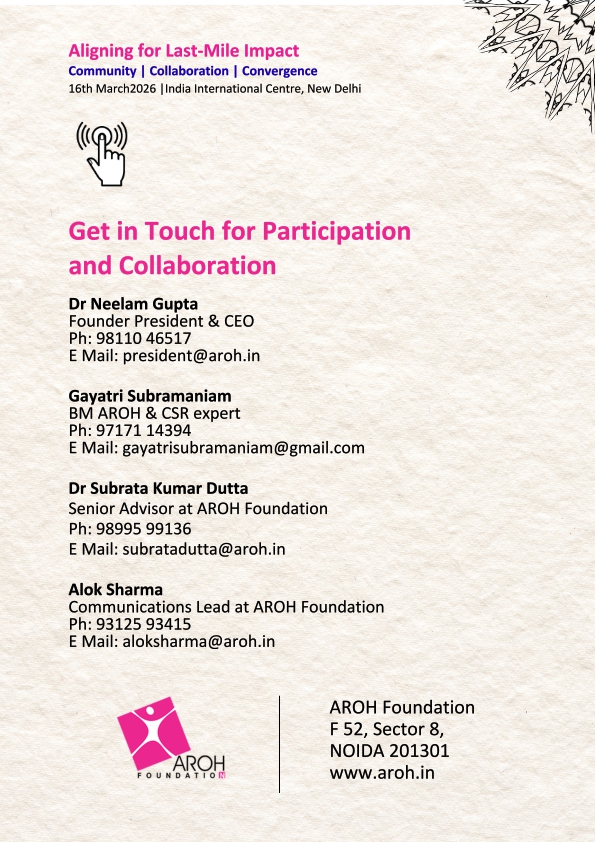 The National CSR Summit 2026, curated by AROH Foundation, will be held on 16 March 2026 at India International Centre. Designed as a high impact, one day national platform, the Summit focuses on the theme Community, Collaboration, Convergence with a clear goal of aligning CSR for last mile impact.